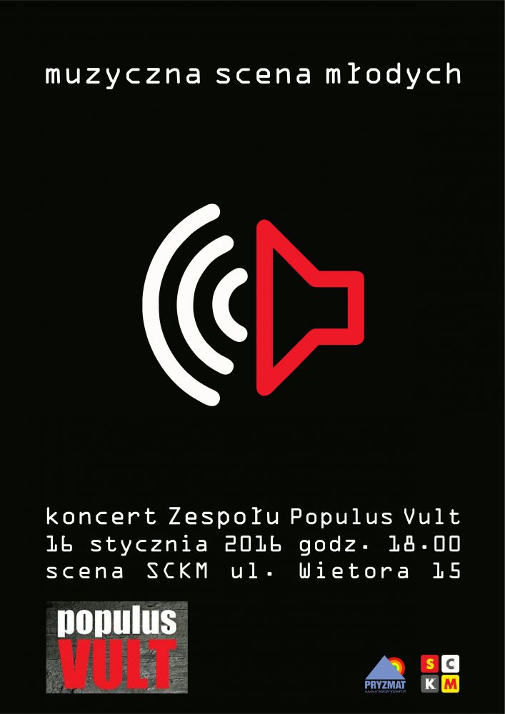 16 stycznia 2016, godz. 18.00 Muzyczna Scena Młodych zaprasza na koncert krakowskiego zespołu Populus Vult. Grajš rock z pozytywnym przekazem.