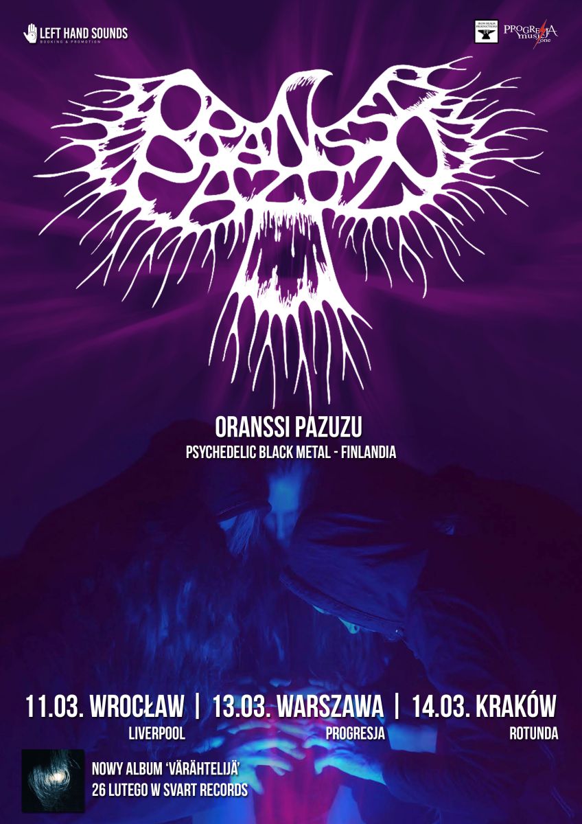 Fiński, Oranssi Pazuzu, jeden z najbardziej innowacyjnych zespołów współczesnego black metalu wystšpi w krakowskiej Rotundzie 14 marca. Jeli przyjšć, że black metal od kilku lat ponownie rozkwita i zaskakuje swymi kolejnymi mutacjami, to Oranssi Pazuzu sš bez wštpienia jednymi ze sprawców tego stanu rzeczy. Istniejšca od niespełna dekady formacja z Tampere i Seinäjoki, wraz z każdym kolejnym albumem poszerza granice gatunku o kolejne wymiary, będšc zarazem głównš siłš napędowš jego psychodelicznego odłamu. Systematycznie zwiększajšc swš siłę oddziaływania, poczšwszy od debiutu Muukalainen Puhuu (2009) i zwracajšc uwagę coraz liczniejszych fanów w rodzimej Finlandii oraz poza jej granicami, grupa zaistniała na międzynarodowej arenie dzięki wydanemu przed trzema laty albumowi Valonielu. Zderzenie blackmetalowej surowoci z astronomicznym rozmachem space rocka wprawiło w zachwyt słuchaczy pod każdš szerokociš geograficznš. - Przez sporš częć czasu trwania płyty nie będziecie mieli zielonego pojęcia, co dzieje się z waszymi narzšdami słuchu. I włanie to jest OK pisał w recenzji Valonielu opiniotwórczy portal CVLT Nation.