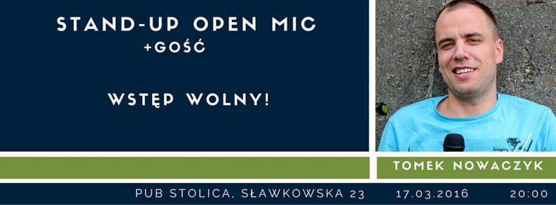 Tomek Nowaczyk obiecujšcy (na przykład zwrot pożyczonych pieniędzy) stand-upper. Zwycięzca konkursu One Ryj Show podczas XIX Rybnickiej Jesieni Kabaretowej 2014. Członek kabaretu Czesuaf, nałogowy biegacz (kilkanacie ukończonych maratonów i żyje!), autor wierszy dla dzieci. Jako stand-upper tworzy raczej nie dla dzieci. Ma wielu fanów, z tym że nie wszyscy już o tym wiedzš. Występował na wielu Stolica zaprasza na imprezę typu stand-up! W pierwszej częci odbędzie się open mic. Każdy, kto ma ochotę, wchodzi na scenę, aby opowiedzieć kawałek stand-upu, historię z życia, anegdotę, bardzo dziwny, zabawny sen (ale jednak nalepiej kawałek stand-upu).