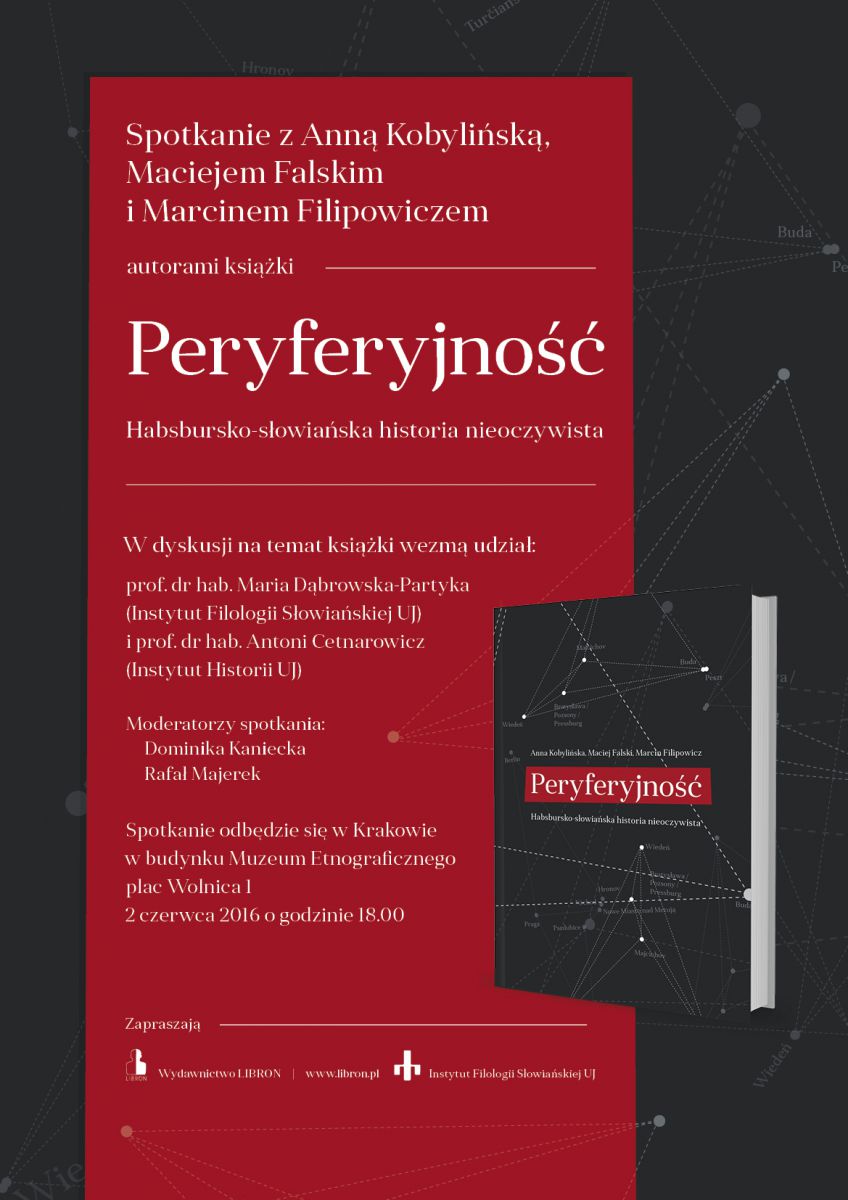 Wydawnictwo Libron oraz Instytut Filologii Sowiaskiej UJ zapraszaj na spotkanie z Ann Kobylisk, Maciejem Falskim oraz Marcinem Filipowiczem, autorami ksiki pt. Peryferyjno. Habsbursko-sowiaska historia nieoczywista