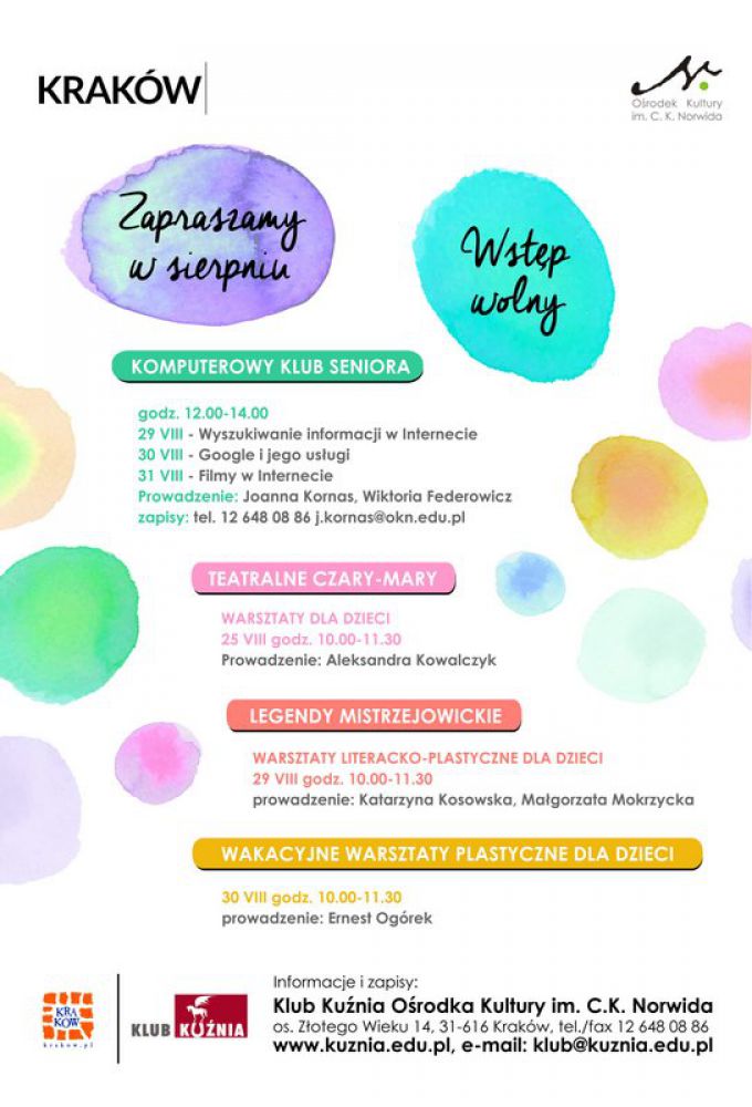 Warsztaty teatralne, literackie i plastyczne już w sierpniu w Klubie Kunia Orodka Kultury im. C. k. Norwida.