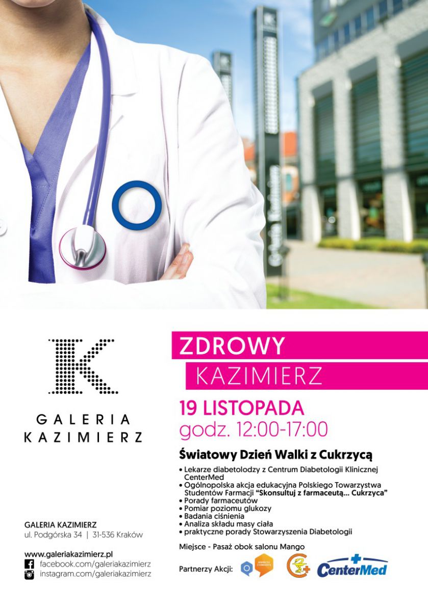W listopadzie Galeria Kazimierz zorganizuje kolejne spotkanie z serii cyklicznych akcji prozdrowotnych Zdrowy Kazimierz. Tematem listopadowego spotkania, w nawišzaniu do obchodzonego 14 listopada wiatowego Dnia Walki z Cukrzycš będzie profilaktyka cukrzycy.