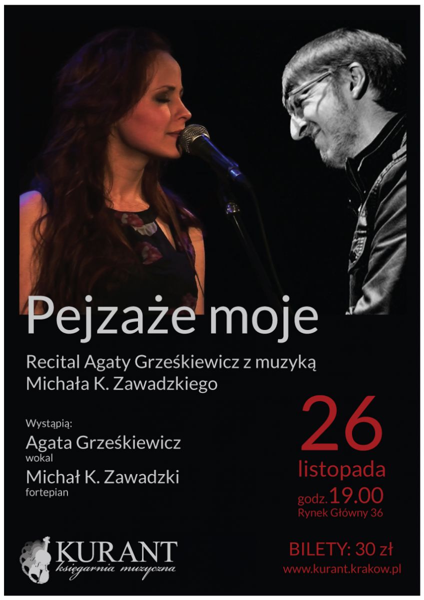 Bilety: 30 zł do nabycia w Księgarni Muzycznej KURANT; rezerwacje elektroniczne: kmkurant@gmail.com; tel. (12) 422-98-59