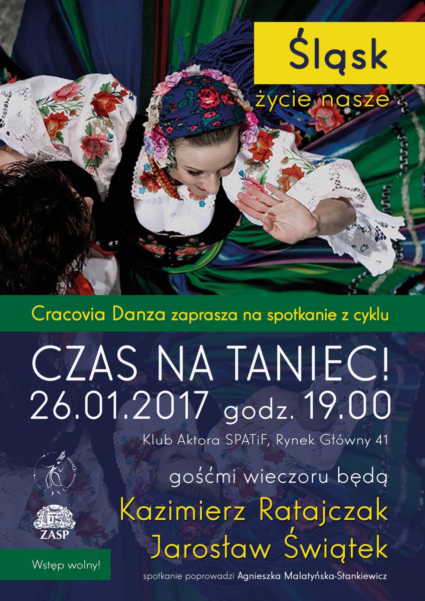 Zespół Pieni i Tańca LĽSK będzie bohaterem najbliższego spotkania CZAS NA TANIEC! organizowanego w ramach cyklu Cracovia Danza. O historii zespołu, codziennej pracy, wyjazdach, naborach, radociach i rozczarowaniach opowiedzš Kazimierz Ratajczak, kierownik artystyczny zespołu lšsk oraz Jarosław wištek, kierownik baletu. Spotkanie, które otrzymało tytuł lšsk, życie nasze odbędzie się w czwartek 26 stycznia o godz. 19 w Klubie Aktora SPATiF, Kraków, Rynek Główny 41.