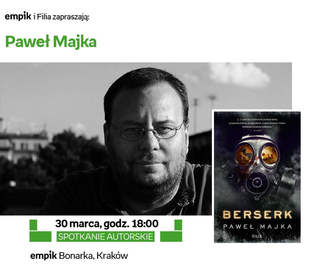 Krakowski autor opowiadań i powieœci fantastycznych powraca z ksišżkš „Berserk” (Filia). Powieœć ta, podobnie jak dwie ostatnie, osadzona jest w konwencji postapo. Tytułem nawišzuje do postaci nordyckiego wojownika, któremu ogarniajšcy go szał walki, dodawał nadludzkiej siły. W „Berserku” wyniszczajšce szaleństwa, które ogarnęło całš ludzkoœć powoduje, że pozostali przy życiu egzystujš w nieustannym strachu, iż szał ów powróci.