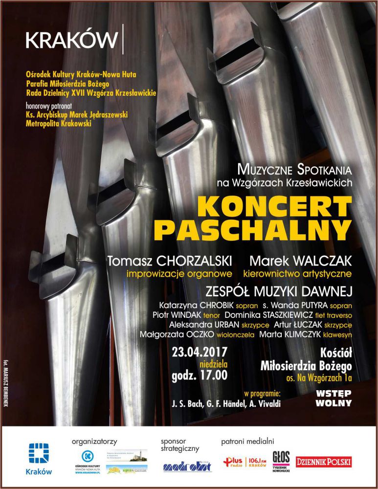Na koncert zapraszajš: Orodek Kultury Kraków-Nowa Huta, Dzielnica XVII Wzgórza Krzesławickie oraz Parafia Miłosierdzia Bożego na Wzgórzach Krzesławickich. Kierownictwo artystyczne nad wydarzeniami cyklu sprawuje Marek Walczak organista parafii Miłosierdzia Bożego na Wzgórzach Krzesławickich.