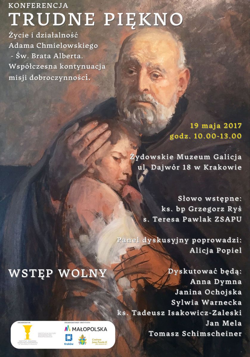 Z okazji obchodów Roku więtego Brata Alberta Instytut Dialogu Międzykulturowego im. Jana Pawła II w Krakowie zaprasza na konferencję "Trudne Piękno. Życie i działalnoć Adama Chmielowskiego - w. Brata Alberta. Współczesna kontynuacja misji dobroczynnoci", która odbędzie się w Żydowskim Muzeum Galicja przy ul. Dajwór 18 w Krakowie 19 maja 2017 r., o godzinie 10.00. Wstęp wolny.