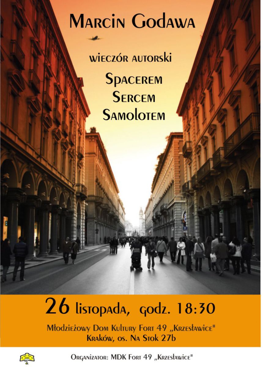 Zapraszamy na wieczór autorski Marcina Godawy, który odbędzie się w dniu 26 listopada 2017, o godz. 18:30 w Młodzieżowym Domu Kultury Fort 49 Krzesławice, os. Na Stoku 27b.