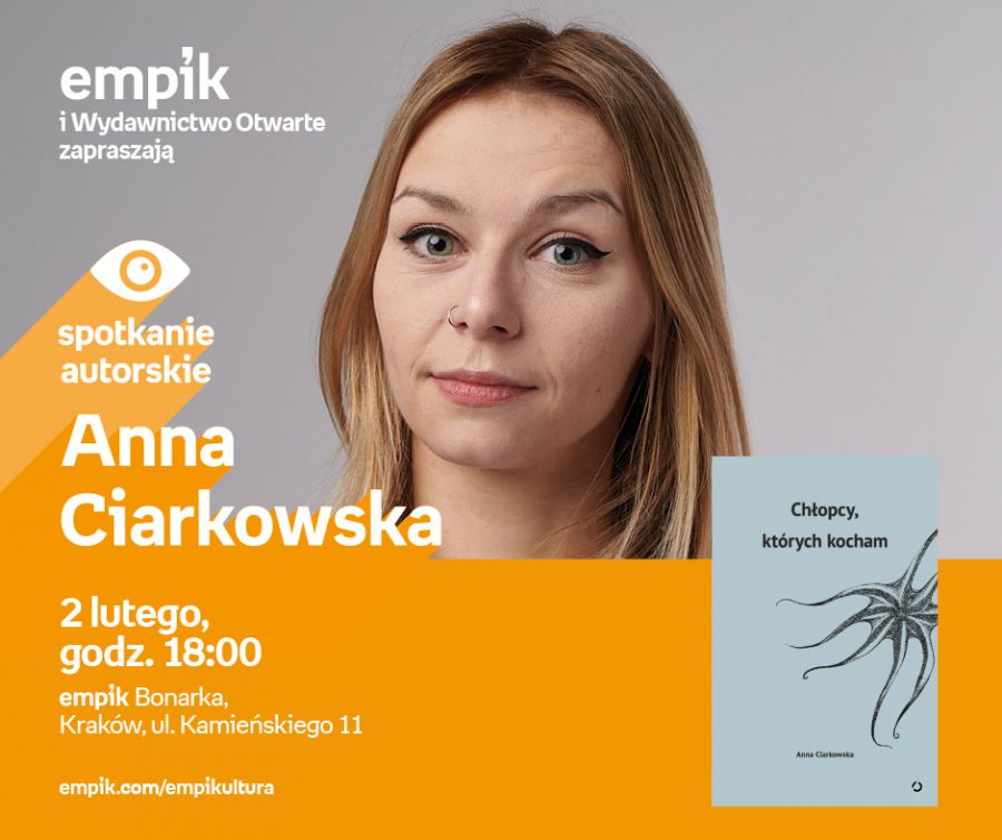 Pochodzšca z Łodzi Anna Ciarkowska to instapoetka, czyli przedstawicielka młodego pokolenia, której wiersze można było przeczytać do tej pory wyłšcznie na profilu autorki na Instagramie. Teraz zostały zebrane i wydane w tomiku poezji Chłopcy, których kocham (Wydawnictwo Otwarte). Sš to wiersze o miłoci, zwišzkach i relacjach pomiędzy dwojgiem ludzi. Sš też wród nich listy do tytułowych chłopców, które nigdy nie zostały wysłane. Fanpage Chłopcy, których kocham zgromadził już prawie 50 tys. fanów. Anna Ciarkowska, odkšd pamięta, pisała do szuflady. Z wykształcenia jest filolożkš i literaturoznawczyniš, a prywatnie - wielbicielkš spacerów, rekinów i przesłodzonej kawy z mlekiem.