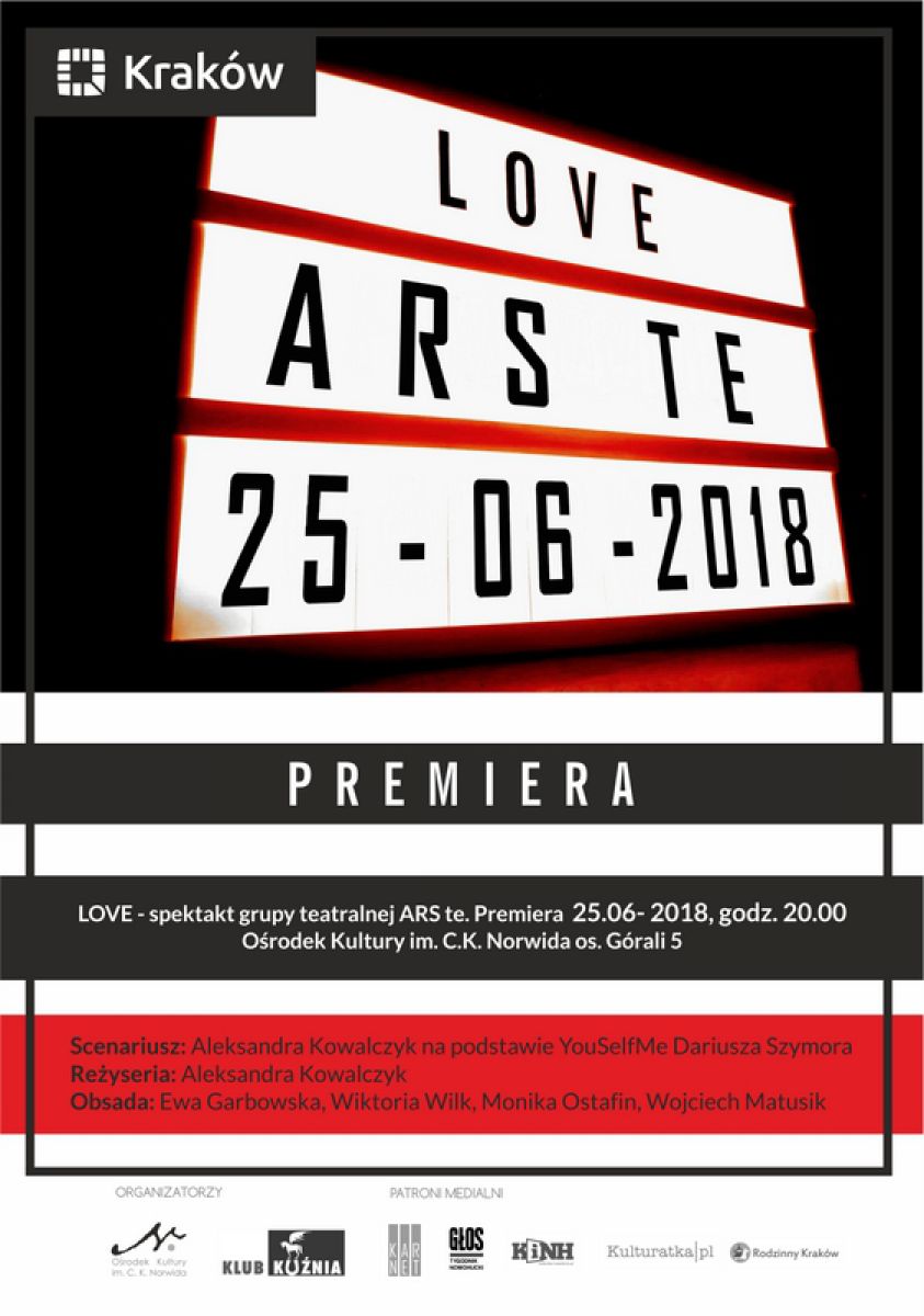 Spektakl LOVE został stworzony na podstawie autorskiego tekstu Dariusza Szymora YouSelfMe. Opowiadamy o miłoci. O jej braku. O współczesnoci. Czerpiemy z motywów baniowych. Wstęp wolny.