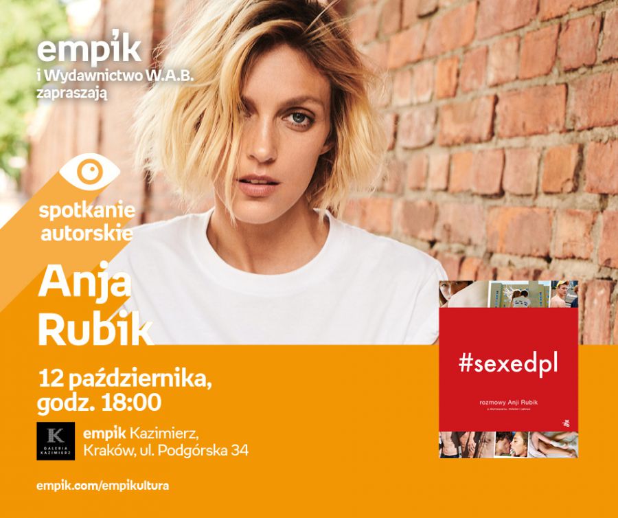 Osiemnaœcie rozmów. Ogrom merytorycznej wiedzy. Zero pruderii. I jedna postać, rozpoznawalna na całym œwiecie: Anja Rubik. Odważna i przełomowa kampania #SEXEDPL kilka miesięcy temu podbiła polski internet. Teraz pora na sygnowanš nazwiskiem top modelki ksišżkę skierowanš do młodych ludzi. Na jej potrzeby Rubik przeprowadziła rozmowy z kilkunastoma ekspertkami i ekspertami, których otwarcie pyta o wszystko, co w polskim społeczeństwie często kategoryzowane jest jako tabu. Ksišżkę „#sexedpl. Rozmowy Anji Rubik o dojrzewaniu, miłoœci i seksie” (Wydawnictwo W.A.B.) wyróżnia też wyjštkowa oprawa wizualna. Komiksy znanej w sieci jako Kiciputek Katarzyny Babis i fotografie Zuzy Krajewskiej dodajš całoœci dynamiki, lekkoœci i elegancji. Całoœć przygotowała z młodymi ludŸmi. Chwilę po premierze ksišżki rusza w trasę by porozmawiać z publicznoœciš o tej niezwykłej publikacji. Zapraszamy na spotkania.