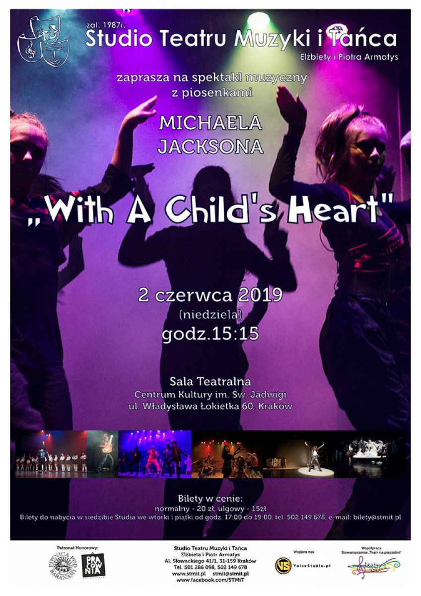 "WITH A CHILD'S HEART" to historia drogi artystycznej Michaela Jacksona od małego cudownego dziecka przez zbuntowanego młodzieńca, aż do zagubionego Piotrusia Pana z bajkowej posiadłoci Neverland.