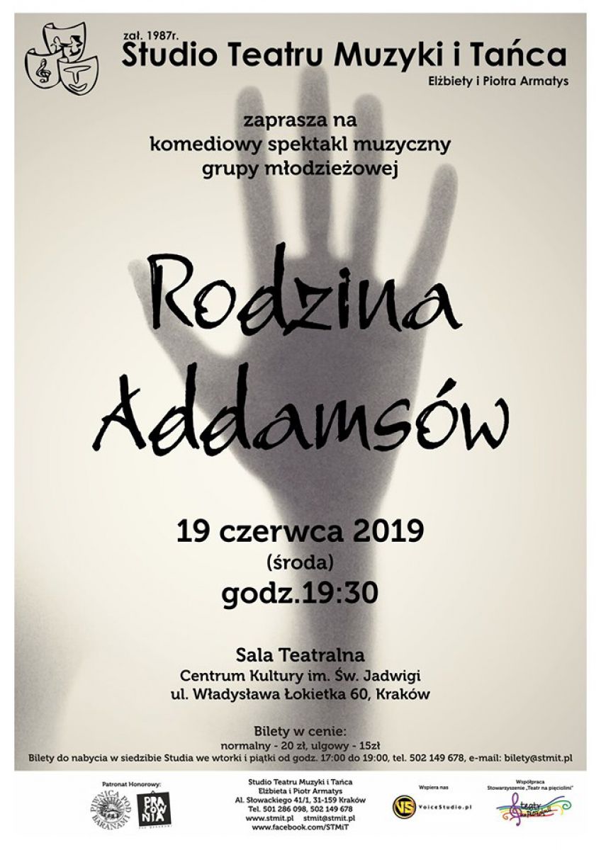 Serdecznie zapraszamy na komediowy spektakl muzyczny "Rodzina Addamsw" w wykonaniu grupy modzieowej Studia Teatru Muzyki i Taca