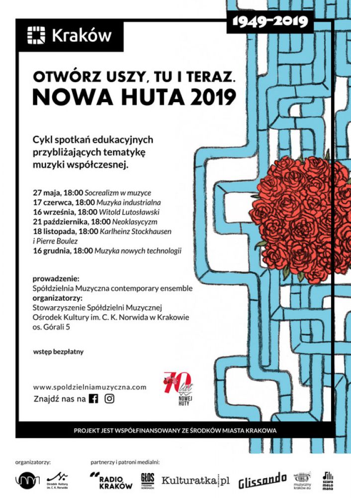 Otwórz Uszy. Tu i Teraz. Nowa Huta 2019 to comiesięczne spotkania, organizowane przez Spółdzielnię Muzycznš Contemporary Ensemble we współpracy z Orodkiem Kultury im. C. K. Norwida. Łšczš w sobie profesjonalizm muzyków, którzy uczestniczyli w największych festiwalach muzyki nowej w Polsce i za granicš (Warszawska Jesień, Sacrum Profanum, Internationale Ferienkurse für Neue Musik w Darmstadt), z przystępnš formš prezentacji, za której sprawš niezrozumiała pozornie muzyka zaczyna przemawiać ludzkim głosem. Od maja do grudnia 2019 r., w zwišzku z obchodami 70 rocznicy powstania Nowej Huty organizatorzy podejmš tematy ważne dla rozwoju muzyki klasycznej w XX i XXI w, a przy tym powišzane z historiš i rozwojem Nowej Huty, pod kštem przemian politycznych, społecznych, estetycznych, gospodarczych i technologicznych.