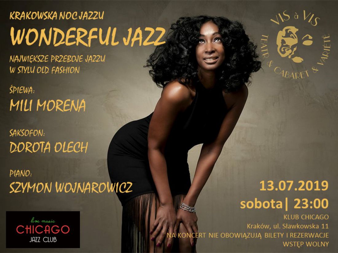 Największe, znane i lubiane szlagiery jazzowe w stylu i klimacie old fashion zapiewa Gwiazda Teatru VIS a VIS, rodowita Kubanka, artystka sceny i estrady, charyzmatyczna i zjawiskowa MILI MORENA.