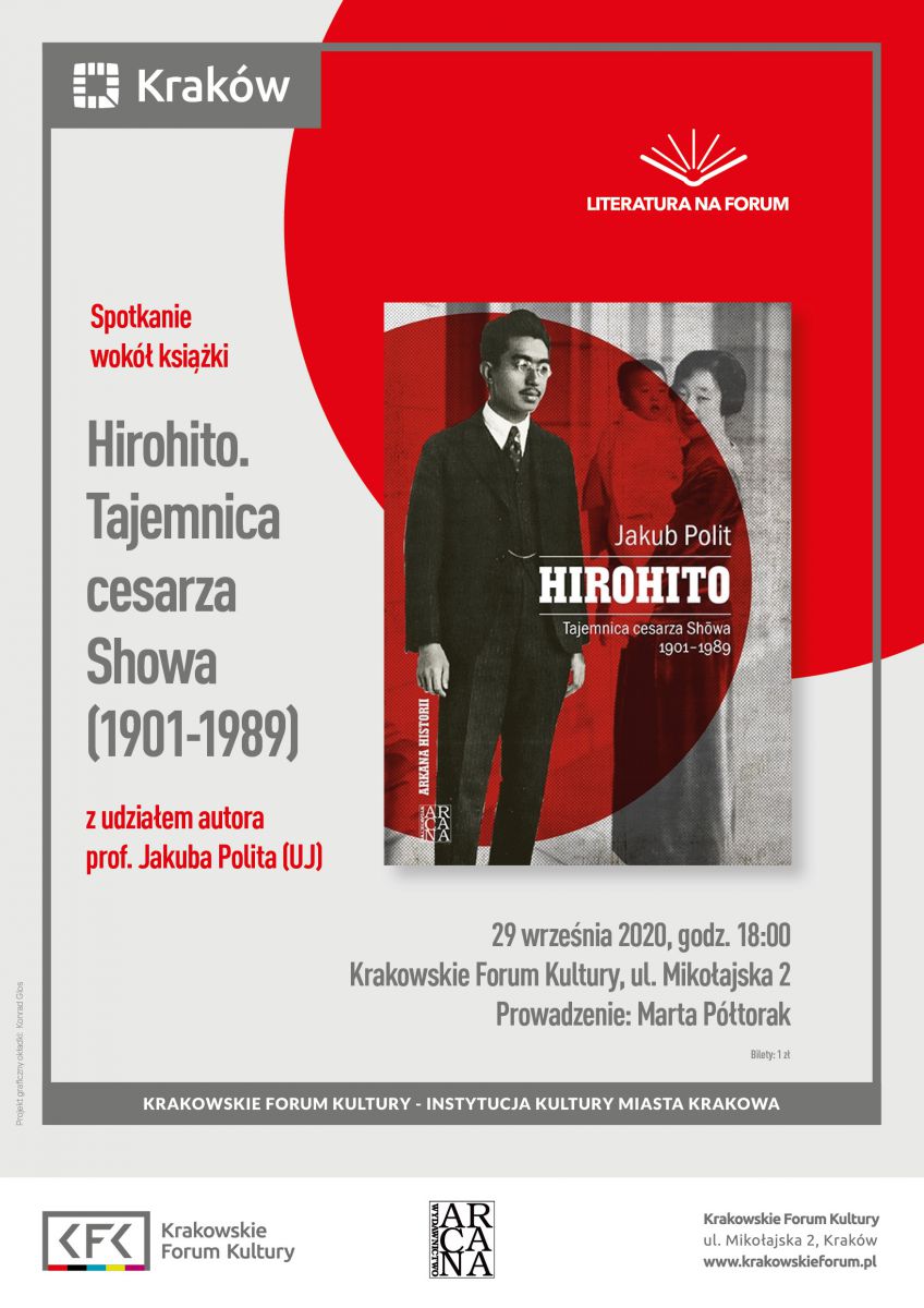 Spotkanie wokół ksišżki Hirohito. Tajemnica cesarza Showa (1901 1989) z udziałem autora prof. Jakuba Polita (UJ). 2 wrzenia 1945 roku na pokładzie pancernika Missouri podpisany został akt kapitulacji Japonii. W maju 1946 roku alianci rozpoczęli procesy przed Trybunałem Wojskowym w Tokio. Dowódca sił okupacyjnych USA gen. Douglas MacArthur nie chciał, by Hirohito stanšł przed sšdem. Panujšcy przez 62 lata cesarz Shōwa, za życia znany jako Hirohito, należy do najbardziej enigmatycznych i kontrowersyjnych mężów stanu XX wieku. Jego oceny oscylujš między obrazem bezwolnej marionetki w cudzych rękach, po perfidnie zacierajšcego lady własnych zbrodni wszechwładnego dyktatora. Czy przed 1945 rokiem był władcš absolutnym w państwie oficjalnie konstytucyjnym? I czy po tej dacie naprawdę stracił wszelki wpływ na rzšdy? Analiza skšpych wiadectw, które można uznać za rzetelne, daje obraz daleki od proponowanych schematów.