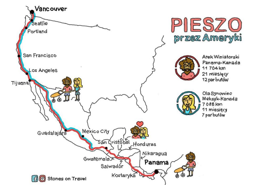 Ola i Arek podczas tej wyprawy zakochali się nie tylko w sobie, w Amerykach i w życiu, ale przede wszystkim w chodzeniu. Wierzš, że 6km/h to najlepsza, najbardziej naturalna prędkoć. Do poznawania wiata, do poznawania ludzi, do poznawania siebie.