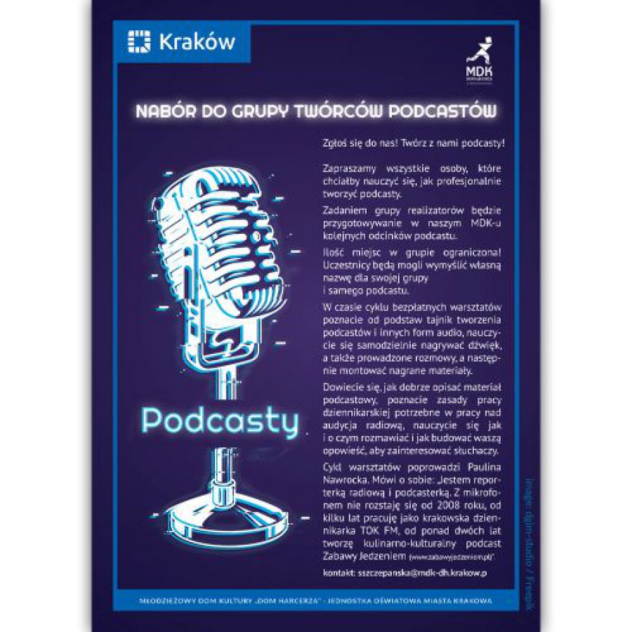 Zadaniem grupy realizatorów będzie przygotowywanie w naszym MDK-u kolejnych odcinków podcastu.