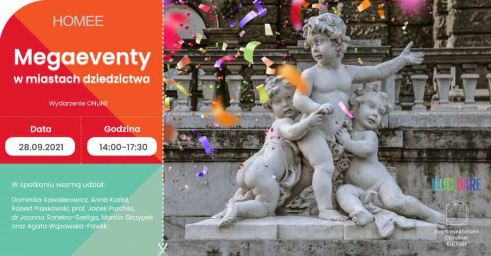 28.09 w Międzynarodowym Centrum Kultury odbędzie się spotkanie poœwięcone wielkim wydarzeniom – przede wszystkim Europejskiej Stolicy Kultury, z uwagi na kilkuletni, wieloetapowy wyœcig, do którego stanš niedługo polskie miasta ubiegajšce się o ten tytuł. W dyskusji uczestnicy spotkania posłużš się „Kartš megaeventów w miastach dziedzictwa”, wypracowanš w ramach międzynarodowego projektu HOMEE (2018-2021), która zawiera zasady i wskazówki majšce umożliwić miastom wykorzystanie licznych możliwoœci wynikajšcych z urzšdzania megaeventów, jak również minimalizację ryzyka zwišzanego z ich organizacjš.