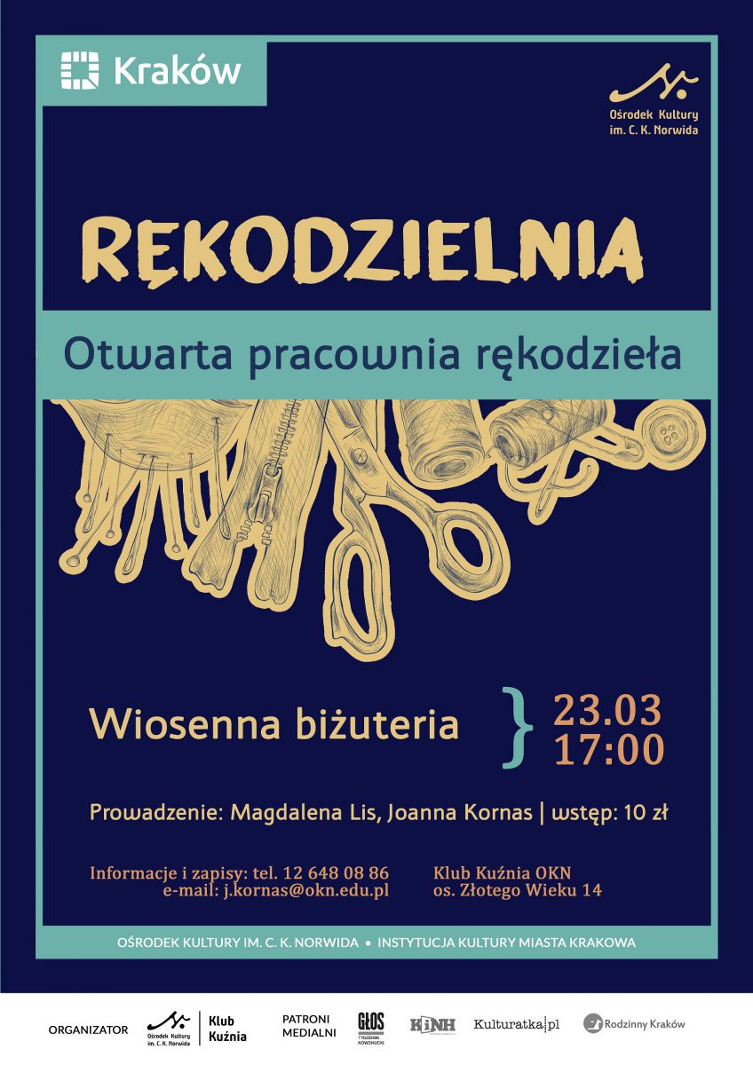 Zapraszamy na kolejnš „Rękodzielnie” w Klubie KuŸnia Oœrodek Kultury im. C.K. Norwida. W ramach marcowego spotkania uczestnicy zajęć stworzš wiosennš biżuterię.