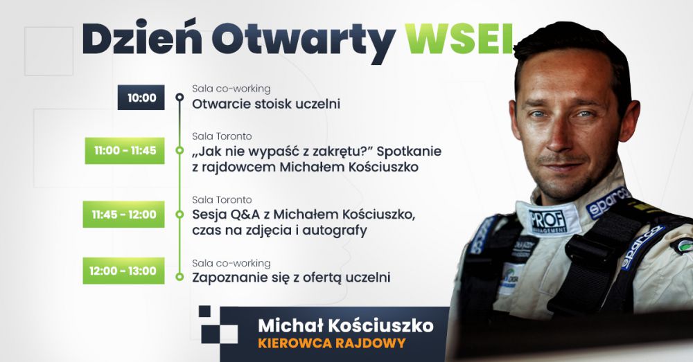Wyższa Szkoła Ekonomii i Informatyki w Krakowie zaprasza uczniów szkół ponadgimnazjalnych, a szczególnie maturzystów, do udziału w wyjštkowym Dniu Otwartym WSEI z Michałem Kociuszko.