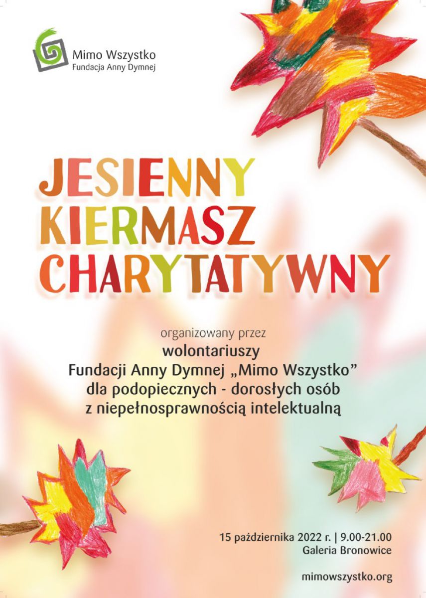 Organizowane przez fundację kiermasze charytatywne cieszą się dużym zainteresowaniem. Ich wyjątkowy charakter za każdym razem przyciąga wiele osób, które odczuwają chęć pomocy. Podopieczni, wolontariusze oraz przyjaciele fundacji także i tym razem przygotowali wyjątkowe upominki. Wśród rękodzieł znajdziemy ceramiczne miseczki w jesiennych kolorach, aromatycznie pachnące świeczki sojowe, urocze makramy w kształcie liści, dyniowe zawieszki czy ciepłe, ręcznie robione na drutach czapki - idealne na chłodne poranki. Każda osoba, która 15 października wesprze organizację dobrowolną darowizną, będzie mogła wybrać upominek dla siebie i swoich bliskich. Kiermasz będzie czynny w godzinach otwarcia Galerii Bronowice, czyli od 9.00 do 21.00.