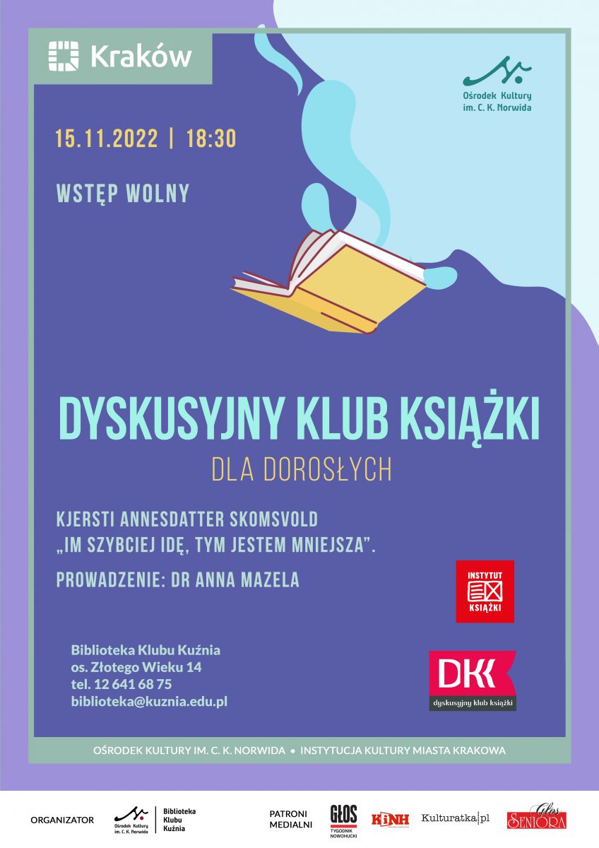 Dyskusyjny Klub Książki dla dorosłych. Kjersti Annesdatter Skomsvold, „Im szybciej idę, tym jestem mniejsza”