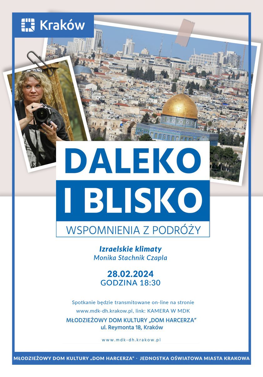 MDK Dom Harcerza zaprasza na kolejną odsłonę cyklu podróżniczego "Daleko i blisko" - Izraelskie klimaty.