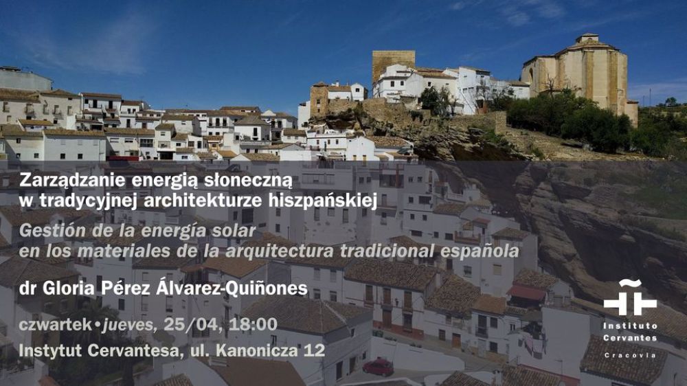 Instytut Cervantesa w Krakowie zaprasza na wykład dr Glorii Pérez Álvarez-Quiñones na temat wykorzystania energii słonecznej w materiałach tradycyjnej architektury hiszpańskiej, organizowany w ramach programu „Hiszpańska architektura kobiet” towarzyszącemu wystawie „Zamieszkiwanie różnorodności. Tradycyjna architektura w Hiszpanii: przykład zrównoważonego rozwoju".