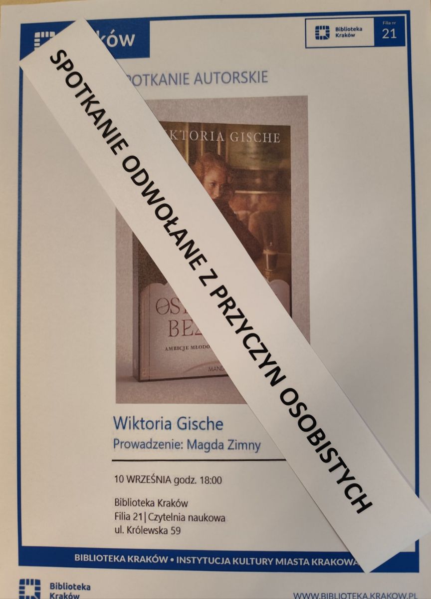 Spotkanie autorskie z Wiktorią Gische - ODWOŁANE Z PRZYCZYN POSOBISTYCH - PRZEPRASZAMY!