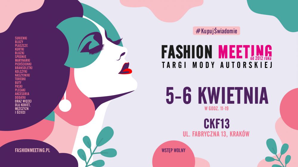 Fashion Meeting – Kupuj Świadomie (www.fashionmeeting.pl) to ogólnopolska inicjatywa, która od 13 lat promuje etyczną, niezależną modę twórców stawiających na jakość, lokalność i własną wizję stylu. W Krakowie zagości w towarzystwie absolutnie wyjątkowych projektantów – niektórzy z nich pokażą się tu po raz pierwszy!
