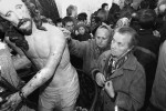 „Przybywajšc do Kalwarii wiosnš 1995 roku, bardzo szybko odpuœciłem sobie fotografowanie parateatralnego przedstawienia Misterium Męki Pańskiej, które w obecnym kształcie wymyœlone zostało w czasach powojennych przez nieżyjšcego już o. Augustyna Chadama z tamtejszego klasztoru Bernardynów. (…) Uwagę mojš zwróciły natomiast od razu oblicza uczestników czy też obserwatorów tego spektaklu. Zniszczone ciężkš pracš fizjonomie pštników, pogršżone w autentycznym religijnym uniesieniu, przeżywaniu nowotestamentowej relacji na temat œmierci boskiego syna lub w żalu po œmierci jego matki. Wyłapywałem z tłumu poszczególne twarze za pomocš teleobiektywu, po czym doœć szybko zdałem sobie sprawę, że należy podejœć bliżej”.