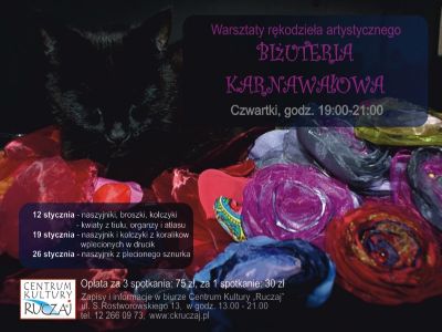 Informacje i zapisy w biurze CK "Ruczaj", ul. Rostworowskiego 13, od pn-pt w godz. 13:00-21:00, tel. 12 266 09 73 lub mailowo: biuro@ckruczaj.pl