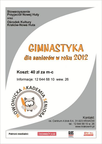 Nowohucka Akademia Seniora zaprasza na zajęcia usprawniajšce dla osób starszych.