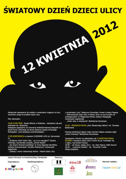 12 kwietnia obchodzony jest Œwiatowy Dzień Dzieci Ulicy. W akcję uczynienia tego dnia oficjalnym zaangażowanych jest aż 26 krajów - w tym Polska. W ramach tego dnia nieformalna grupa „Streetpaker” wraz z partnerami zaprasza wszystkich zainteresowanych tš tematykš do włšczenia się w jego obchody na Rynku Głównym oraz do Kawiarni Cudowne Lata.