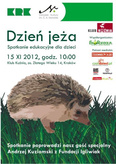 10 listopada więtowalimy Dzień Jeża. Z tej okazji Klub Kunia Orodka Kultury im. C.K. Norwida oraz portal Ekorodzice.pl zapraszajš amatorów kolczastych zwierzštek na spotkanie edukacyjne, które poprowadzi nasz goć specjalny Andrzej Kuziomski z Fundacji Igliwiak.