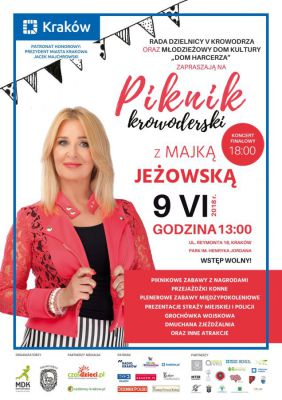 Tegoroczną gwiazdą imprezy będzie Majka Jeżowska. „Piknik Krowoderski” to okazja do prezentacji i promocji młodych talentów muzycznych, tanecznych czy sportowych. Wśród prezentujących się zespołów dziecięcych i młodzieżowych wystąpią laureaci organizowanych przez MDK „Dom Harcerza” konkursów, m.in. Piosenki Anglojęzycznej „Singing Kids”, Festiwalu „Debiuty”, zespoły artystyczne i sportowe szkół podstawowych ZSO nr 51 i ZSOI nr 1 Dzielnicy Krowodrza, Krakowska Orkiestra Staromiejska, Zespół „Krzesany” z Małego Cichego, wykonawcy gospel z Embassy International School, odbędą się pokazy karate i występy cheerleaderek.