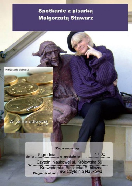 Spotkanie z pisarką Małgorzatą Stawarz zostało odwołane - przepraszamy