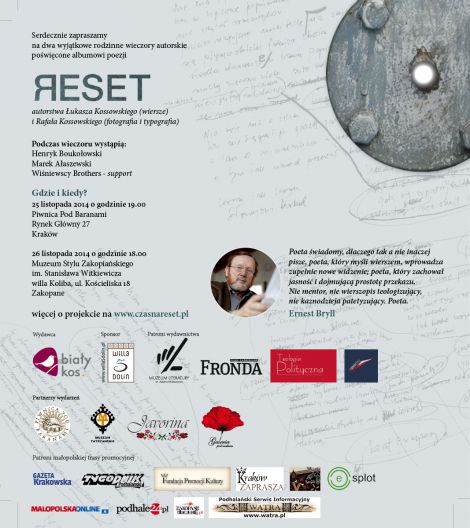 Serdecznie zachęcamy do udziału każdego, kto zgodnie z przesłaniem tomiku wierszy, przystanie na chwilę i dokona swoistego resetu, swej życiowej drogi i wartości, jakimi się kieruje w tej drodze.