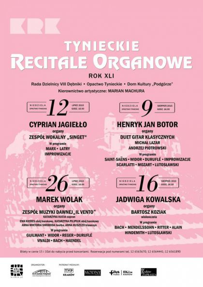 Bilety w cenie 15 i 10 zł. do nabycia przed koncertami. Rezerwacja pod numerami tel.12 6563670,126564441,12 6561890
