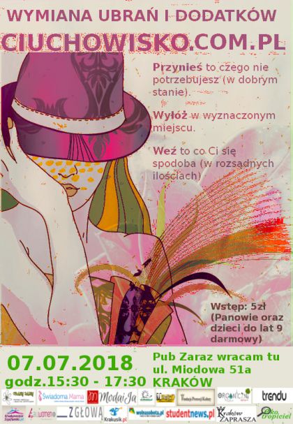 Kolejna edycja szalonej wymiany ubrań i dodatków czyli Krakowskiego Ciuchowiska już 7 lipca. Widzimy się na Kazimierzu w tej samej lokalizacji co ostatnio lokalizacji tj. w Pubie Zaraz wracam tu (ul.Miodowa 51a).