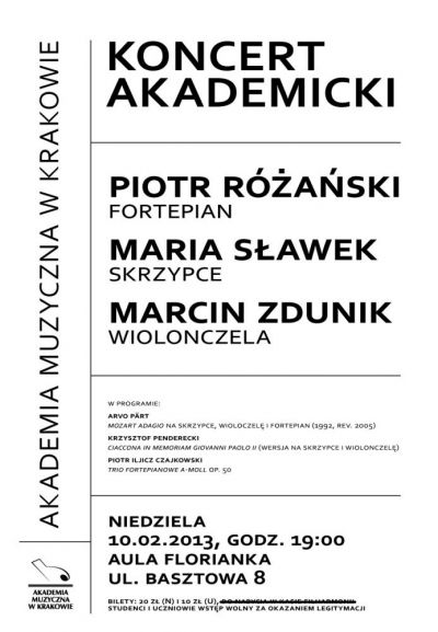 Bilety w cenie 20(N) i 10(U) do nabycia przed koncertem