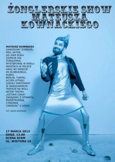 17 marca 2013, godz. 14.30–18.00 – pokaz i warsztaty kuglarskie z Mateuszem Kownackim,