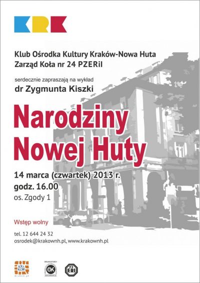 Wykład odbędzie się 14 marca br. o godz. 16.00 w Klubie Ośrodka Kultury Kraków-Nowa Huta (os. Zgody 1).
