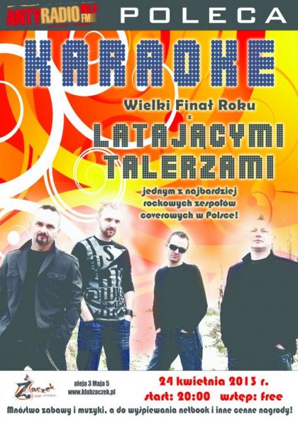 W niemalże każdą środę od października do kwietnia studenci mieli możliwość wzięcia udziału w studenckim karaoke, które odbywało się w Żaczku. Teraz przyszedł czas na wielkie podsumowanie i FINAŁ – nie byle jaki – z udziałem jednego z najbardziej rockowych zespołów coverowych w Polsce, czyli z LATAJĄCYMI TALERZAMI!