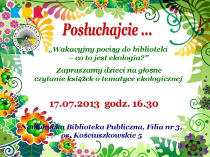 Co to jest ekologia? Jak dbać o Ziemię? Odpowiedzi na te i inne pytania poznacie w bibliotece. W cyklu: „Głośne czytanie na zaczarowanym dywanie” odbędzie się głośne czytanie dzieciom, w ramach projektu Edukacja ekologiczna: pt. „W przyjaźni z naturą”.