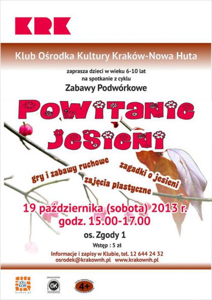 Celem spotkania jest kształtowanie wśród dzieci wrażliwości estetycznej, poczucia piękna jesiennej przyrody oraz zaangażowanie do udziału w licznych konkursach i zabawach. W programie między innymi rebusy i krzyżówki jesienne, quiz pod hasłem Czy wiesz..? oraz konkurs plastyczny, którego motywem przewodnim będzie Pani Jesień. Do udziału w imprezie zapraszamy dzieci w wieku od 6 do 10 lat.