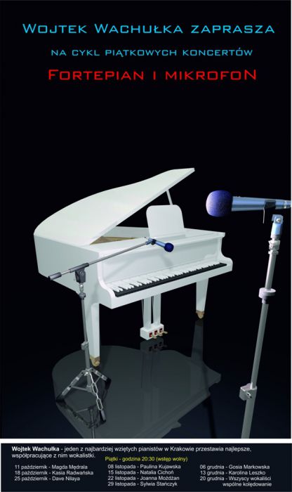 Wojtek Wachułka zaprasza na piątkowy koncert - Fortepian i mikrofon. vocal - Magda Mędrala, Kasia Radwańska, Dave Nilaya, Paulina Kujawska, Natalia Cichoń, Joanna Możdżan, Sylwia Stańczyk, Gosia Markowska, Karolina Leszko, piano - Wojciech Wachułka