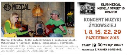 Famous songs of the Jews from Odessa and songs artist Mordechai Gebirtig from Cracow. Among other things, „Beltz”, „Cousin”, „Baj Mir”, „Di Mahka”, „Papirosn”, „Tumbałałajka” etc.