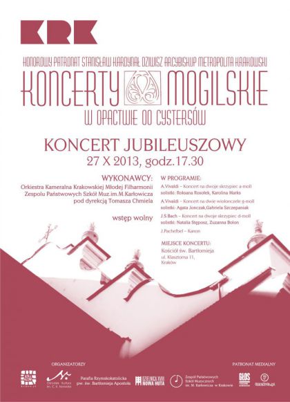 KONCERTY MOGISKIE organizowane pod Honorowym Patronatem Kardynała Stanisława Dziwisza mają już 10 lat. O atrakcyjności i wyjątkowości koncertów, oprócz ich poziomu artystycznego, różnorodności w prezentowanych formach i gatunkach muzycznych ,stanowi również miejsce z wielowiekową historią, znane w Polsce sanktuarium Krzyża Świętego – Opactwo oo Cystersów. Koncerty odbywają się w Bazylice, Krużgankach, w XV-wiecznym, drewnianym Kościele św. Bartłomieja, a kiedyś również w ogrodach opactwa.